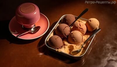 Приготовьте четверть стакана фильтрованного кофе или, если у вас нет кофейника с фильтром, положите две полные столовые ложки молотого кофе в мелкое ситечко, установленное над миской. Залейте треть стакана кипящей воды, затем пропустите жидкость через ситечко второй раз, и если она не прозрачная — процедите через тонкую ткань. Добавьте эту прозрачную жидкость в горячие сливки или заварной крем и приготовьте мороженое по любому рецепту.