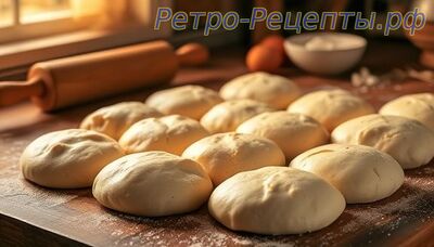 6 стакановъ пшеничной муки развести 1,5 стаканами молока и 1,5 лот. дрожжей (лот = 12,8 г).